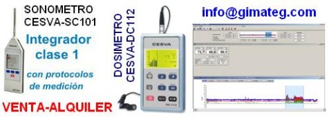 PDF.- SONOMETRO SC101 Clase-1 con iconos aplicaciones PDF.- DOSIMETRO DC122 Clase-1 memoria USB y software PDF.- VIBROMETRO VC431 TRIAXIAL para CUERPO , MANO-BRAZO y EDIFICIOS ,USB y software. PDF.- EQUIPOS TECNICOS VENTA ALQUILER GimateG